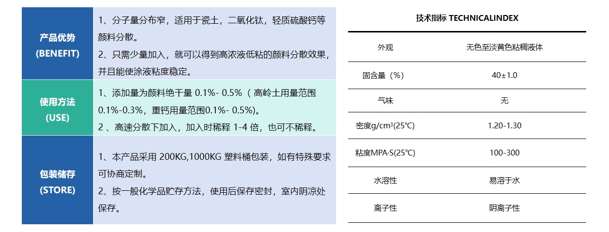 HQ-S933M 分散劑,是聚胺酸系列涂料分散劑,極易溶于水,對無機(jī)頻料 有很好的分散劑和降粘效果。使涂布漿料有極具流動性。